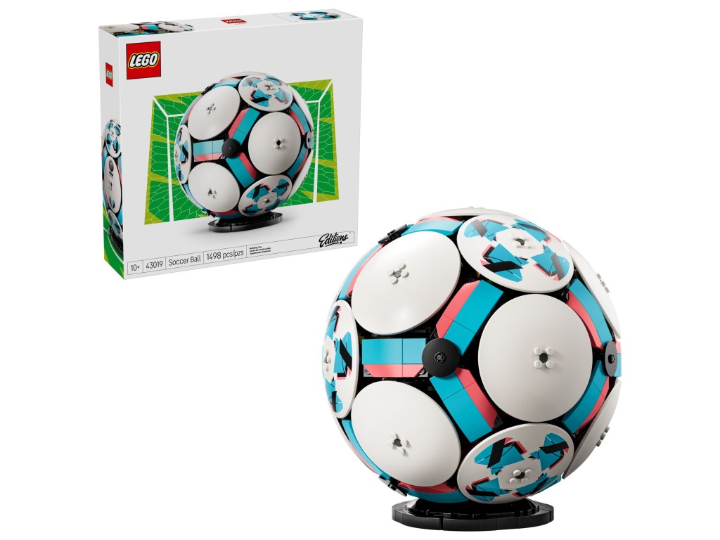- Размеры — футбольный мяч LEGO в этом наборе из 1498 предметов имеет высоту 22 см, ширину 21 см и глубину 21 см.